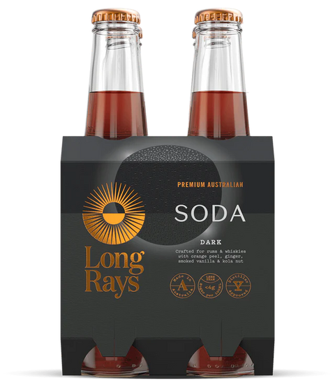 Crafted for bold pairings, Long Rays Dark Soda is rich, spiced, and unexpectedly perfect with our Hearts Blend Gin. With notes of ginger, orange peel, smoked vanilla, and kola nut, it brings out the warm, spiced botanicals in the gin—creating a smooth, full-flavoured cocktail without the fuss.